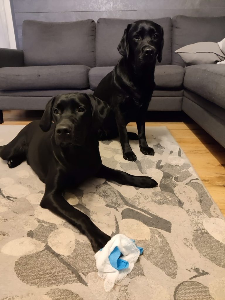 Nämä mahdottoman ihanat ja suloiset potilaamme, Nala ja Uuno, ovat kovin aikaansaavia homekoira-ammattilaisia.